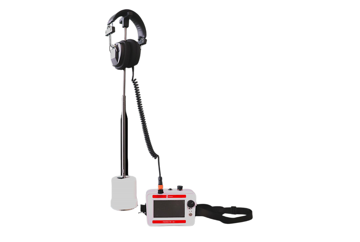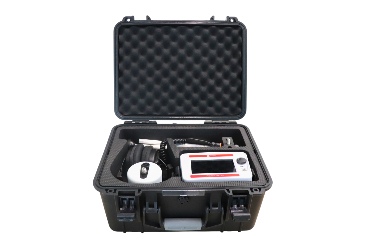 Комплект применяется совместно с генератором высоковольтных импульсов. Принцип работы построен на фиксации акустических и электромагнитных сигналов, возникающих при искровом разряде в месте повреждения кабеля. Благодаря современным технологиям и продуманной конструкции, локализация повреждений выполняется быстро, точно и с максимальным комфортом для оператора. Основными элементами поискового комплекта являются: наземный микрофон, модуль управления и накладные наушники.