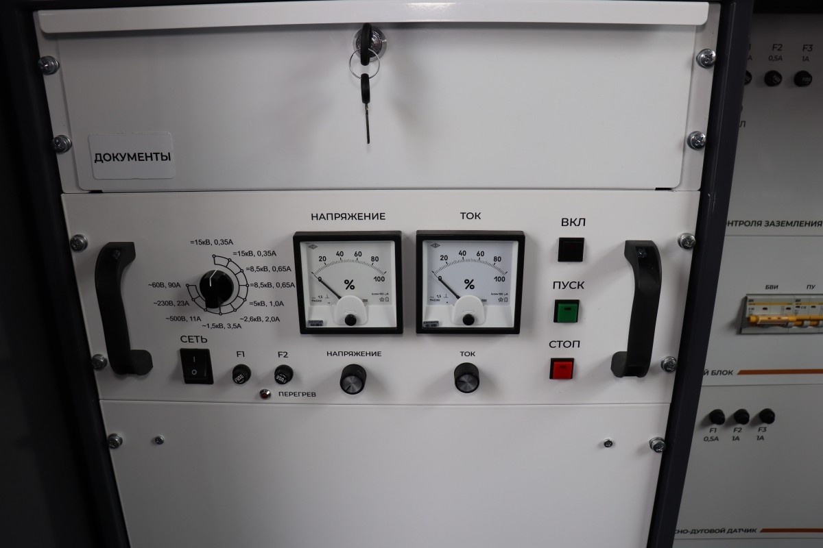 Предназначен для контроля и управления процессами испытаний, поиска мест повреждений и различных измерений, а также для контроля систем безопасности. Блоком осуществляется подача команды на включение выбранного испытательного оборудования. В блок управления входит модуль промышленного компьютера с установленным специализированным ПО. Состав: