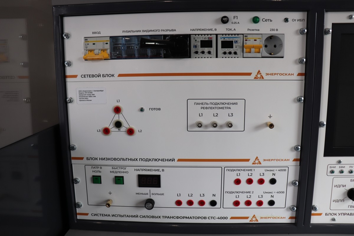 Сетевой блок необходим для контроля питания электротехнической лаборатории, подключения питания сторонних приборов. На панели блока расположены: