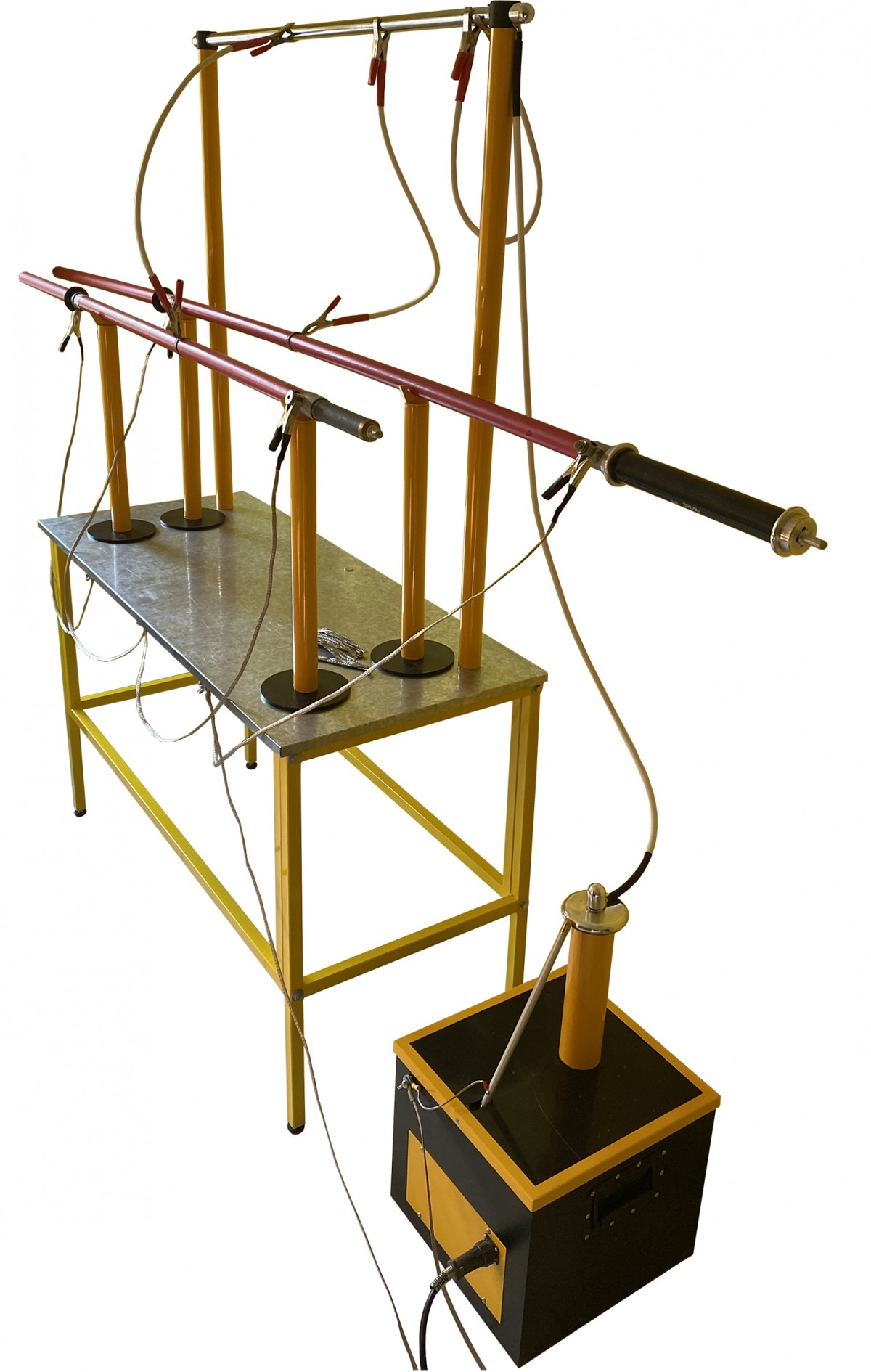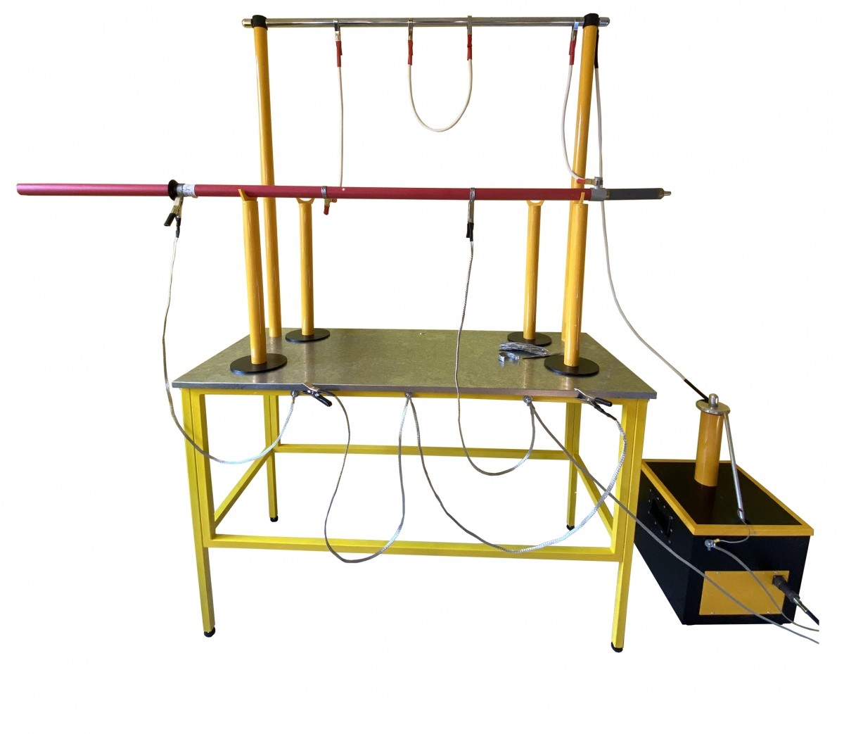 Стенд предназначен для испытаний изолирующих штанг и электрооборудования до 50 кВ, токоизмерительных клещей, изолирующих клещей, изоляторов, указателей ВН и других устройств и приспособлений для обеспечения безопасности работ при измерениях и испытаниях в электроустановках.