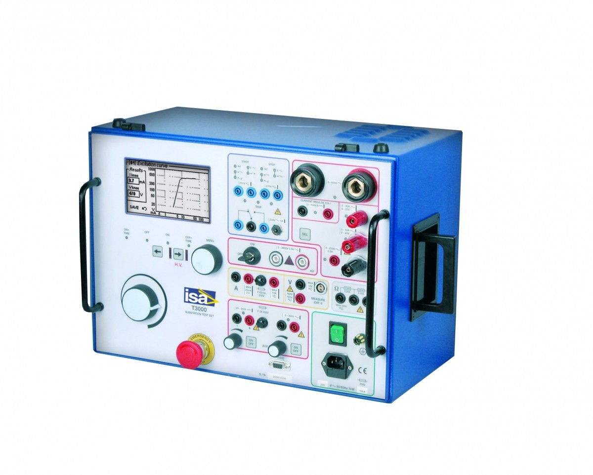 Многофункциональная система Т 3000 производства компании ISA (Италия) предназначена для проверки защит в однофазном режиме, трансформаторов тока (ТТ), трансформаторов напряжения (ТН), силовых трансформаторов, счетчиков электроэнергии, преобразователей и сетей заземления. Система Т 3000 включает в себя функции приборов Т 1000 Plus и T 2000.