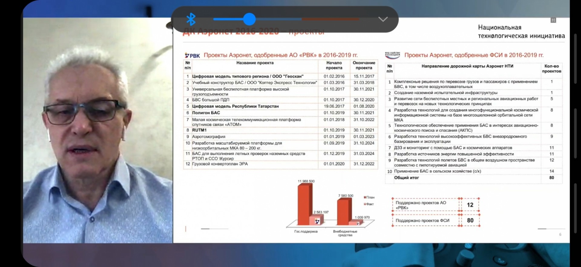 Лидеры рынка БВС, такие компании как DJI, OFIL, BENTLEY, AGM, POLITERM, рассказали о применении своих продуктов в сфере БПЛА. С докладом о состоянии отрасли БВС выступил С.А. Жуков - к.т.н., со-руководитель рабочей группы НТИ по направлению «Аэронет», генеральный директор ЗАО «Центр передачи технологий». Ошеломляющий эффект вызвала презентация компании Geoscan и нового мирового рекорда – шоу дронов с одновременным подъёмом в воздух 1198 единиц светящихся беспилотников.